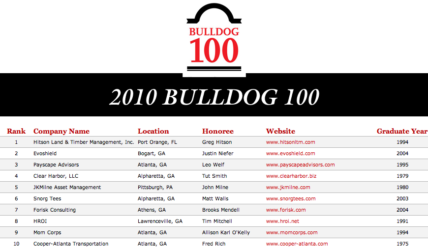 Posted on January 30, 2010 by Brooks Mendell | no comments in Forisk Forisk named 7th in “Bulldog 100 Fastest Growing Businesses” Click figure for full list. Leave a ReplyCancel reply
