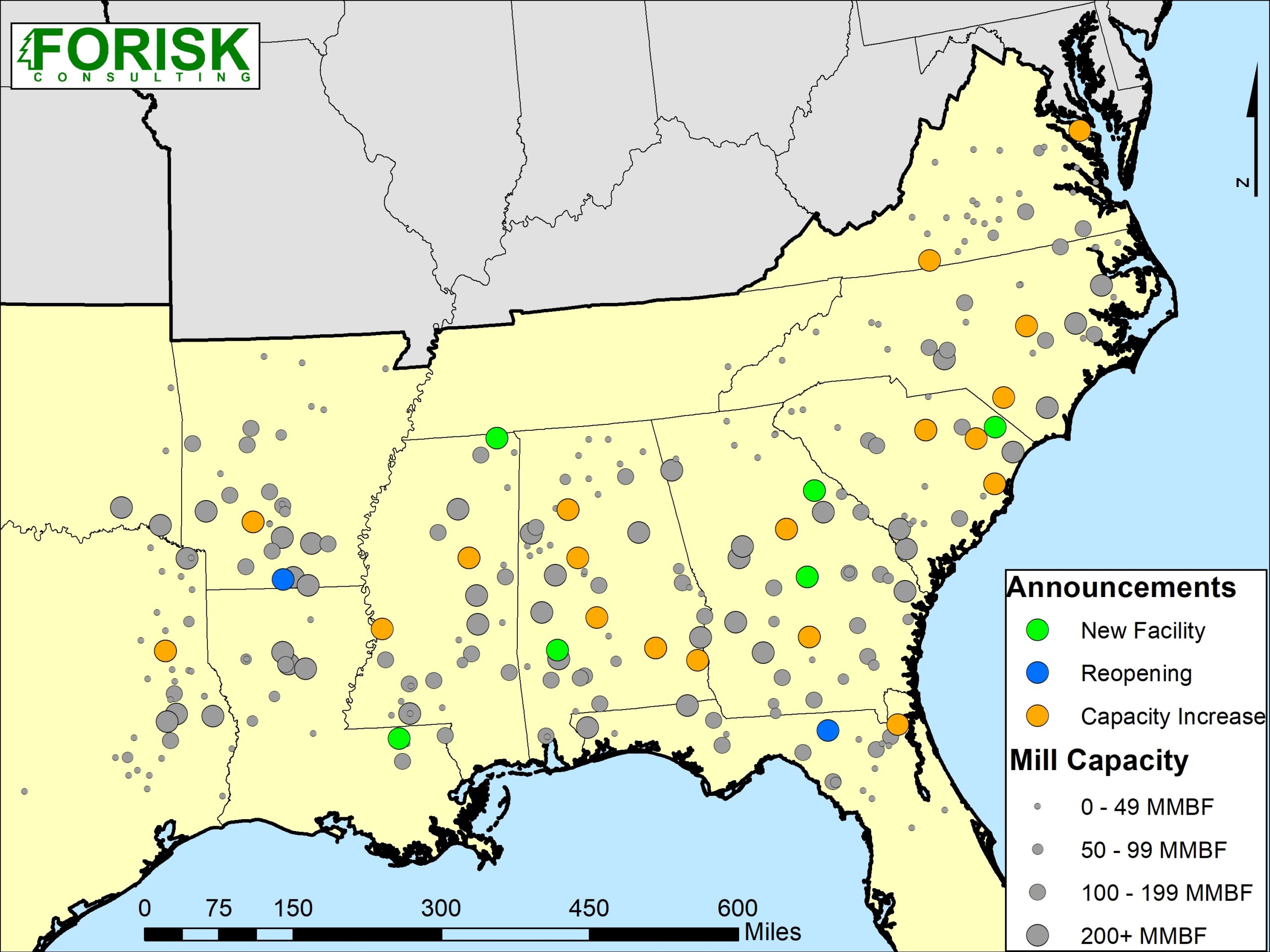 To learn more about the Forisk North American Forest Industry Capacity Database, click here or call Forisk at 770.725.8447. To learn more about the Forisk Research Quarterly (FRQ), click here.