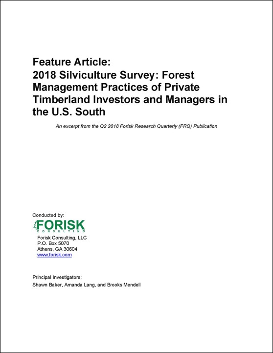 In the spring of 2017, Forisk surveyed the management practices of institutional and industrial timberland owners and managers in Oregon, Washington, Idaho and Montana. This report provides an analysis of silvicultural treatments including site preparation, planting, pre-commercial thinning, harvesting, and more…