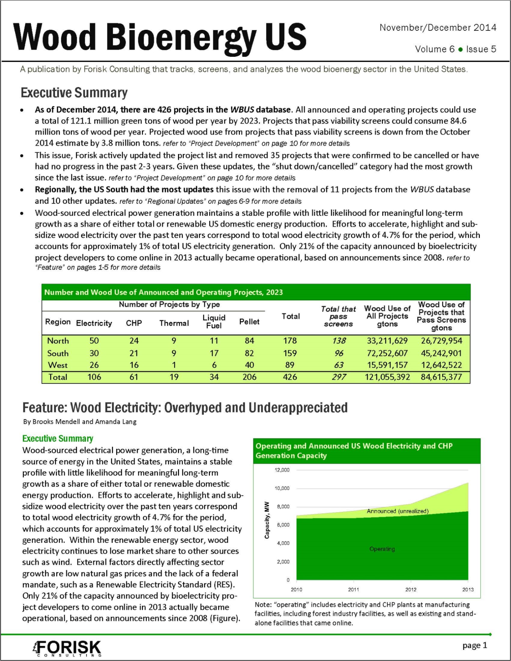 The January/February 2014 issue will be useful for investors, analysts, and executives interested in wood bioenergy markets in the United States, especially regional considerations for wood bioenergy investments