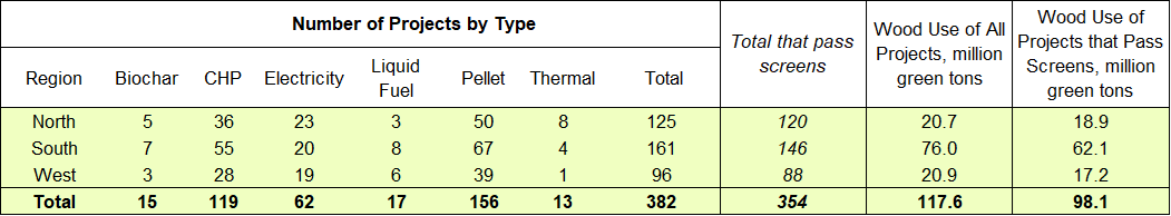 Number and Wood Use of Announced and Operating Projects: