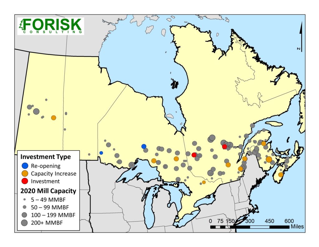 Data for this post comes from Forisk’s comprehensive analysis of North American wood-using capacity for 2008-2020 by firm and sector across five North American regions. For more information, click here.