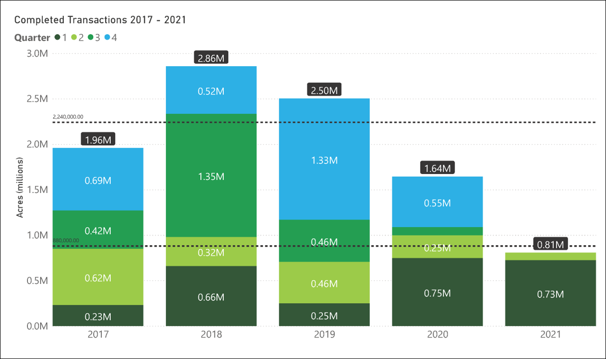 So how does our Q1 synopsis hold up given current information? While we may lack the flair worthy of day-time-TV prognosticators, timberland transaction activity does appear to be trending towards a more positive direction compared to 2020. However, this is assuming an ‘average’ second half of the year in terms of transaction activity. We will see what the cards hold for the rest of 2021.