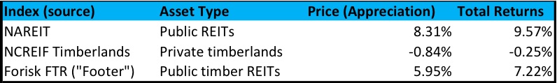 Institutional and individual investors often ask, “what is the difference between investing in timberlands directly and buying stock in publicly-traded timberland-owning real estate investment trusts (timber REITs)?” In brief, one is direct ownership of a hard asset while the other is a claim on the earnings of a timber-growing and selling business. In practice, these investments perform differently – over shorter time periods – and their accessibility varies for different types of investors. (Jeff Opdyke of the Wall Street Journal addressed some of these issues in “Wealthy investors discover timberland,” May 1-2, 2010).