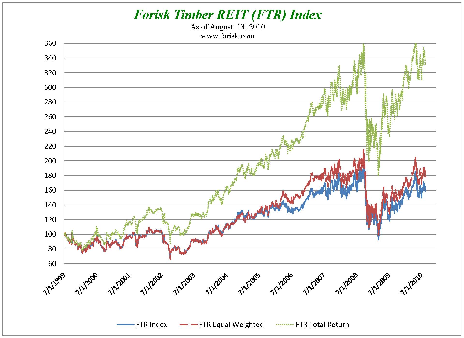 Upon converting, Weyerhaeuser will join the Forisk Timber REIT (FTR, “footer”) Index (see figure), which includes the three publicly-traded timber REITs. With Weyerhaeuser, timber REITs will comprise ~7.5% of the total public REIT market capitalization. We expect greater, positive investor interest in this asset class as the FTR Index continues to outperform the S&P 500 with a 2.1% year-to-date return compared to a negative 3.2% return for the S&P 500.