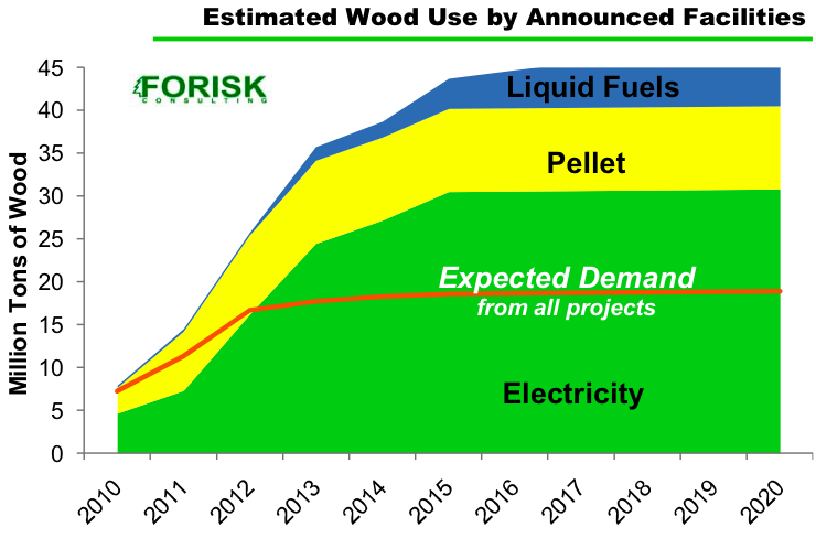 - In total, these projects represent potential, incremental wood use of 46.6 million tons/year by 2020.