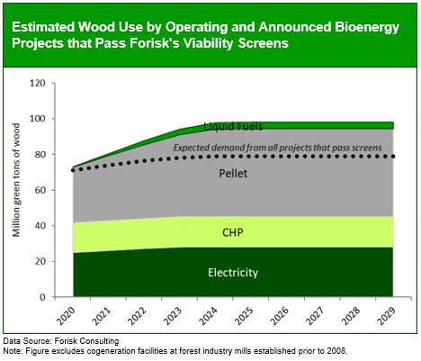 Wood use for viable bioenergy projects in the U.S. could reach 79 million tons per year in 2029. Regionally, the South accounts for 56% of the potential wood use for bioenergy.